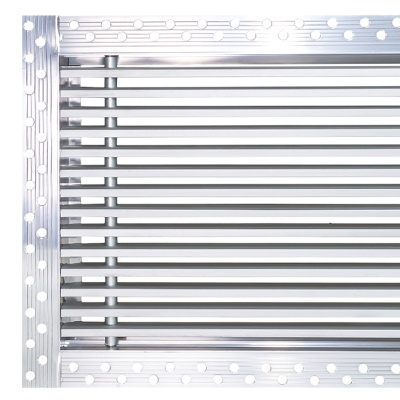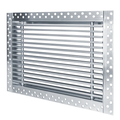 Данная решетка подходит для монтажа на любую поверхность под финишную отделку. Рамка и экран изготовлены из алюминия, опора экрана - из оцинкованной стали. Рама оснащена «полкой» 1,9 мм и рифлеными краями для большей адгезии финишного материала – шпатлевки, цемента. Решетка имеет съемную центральную часть с фиксированным углом наклона ламелей 15°. Она крепится к корпусу прочными металлическими тросиками, легко снимается для очистки и удобного обслуживания.