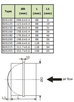 Диаметр воздуховода: