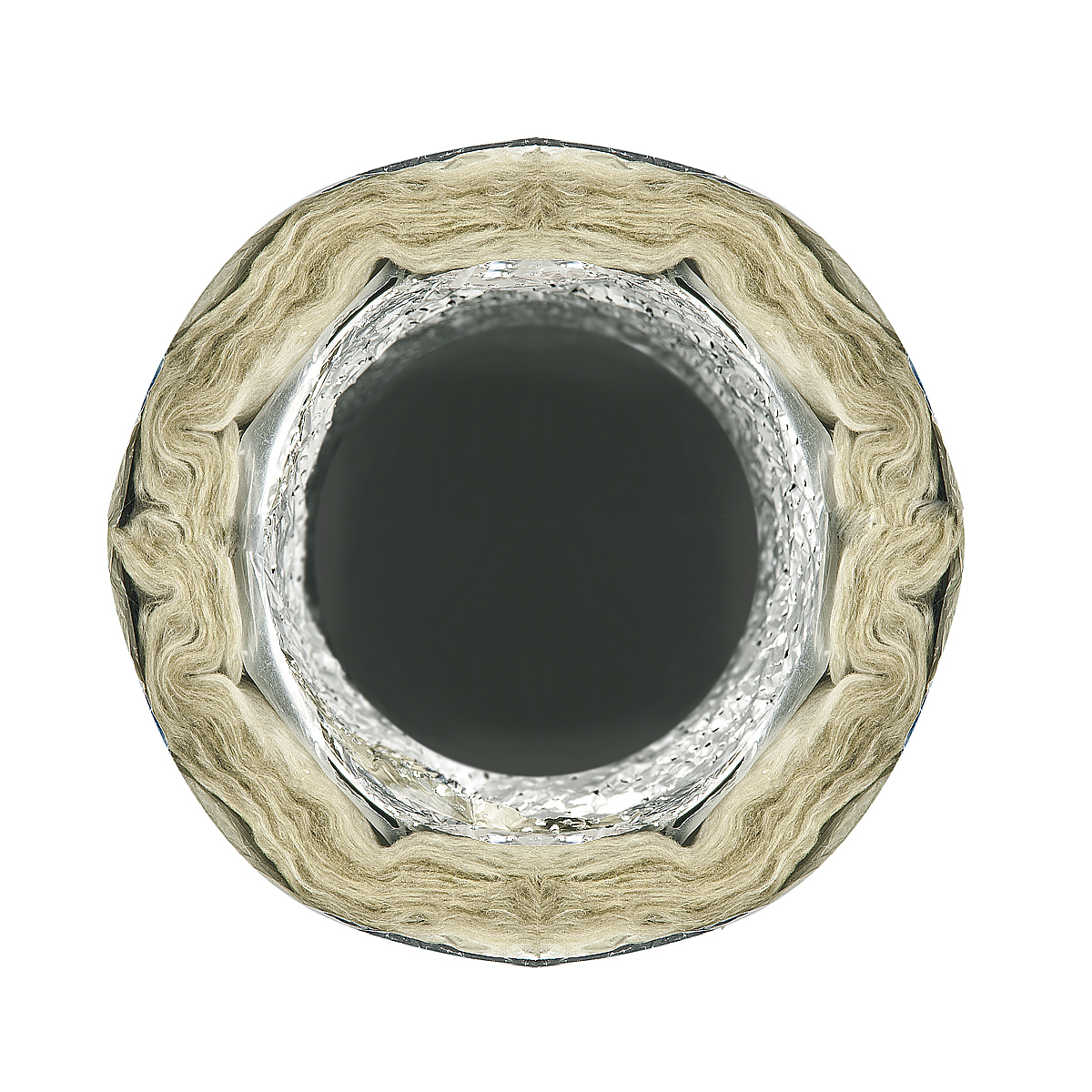 Тепло-звукоизоляционный слой толщиной 32 мм выполнен из материала высокого качества плотностью 12,5 кг/м³. Его коэффициент сопротивления теплопередаче - 0,8 м² К / Вт. Воздуховод с такими характеристиками позволяет эффективно снижать шум от работы вентиляции, делает пребывание людей в помещении комфортным.